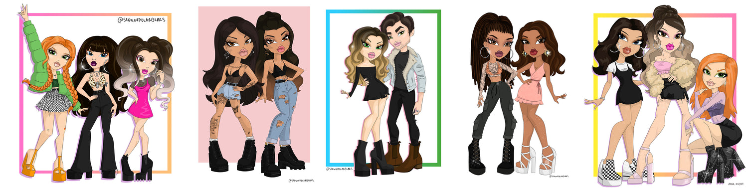 Illustrations begin around $90 for a single person upper body, to $230 for three people full body. Bratz style is an additional 20%. Contact us for an easy quote of what you're thinking!