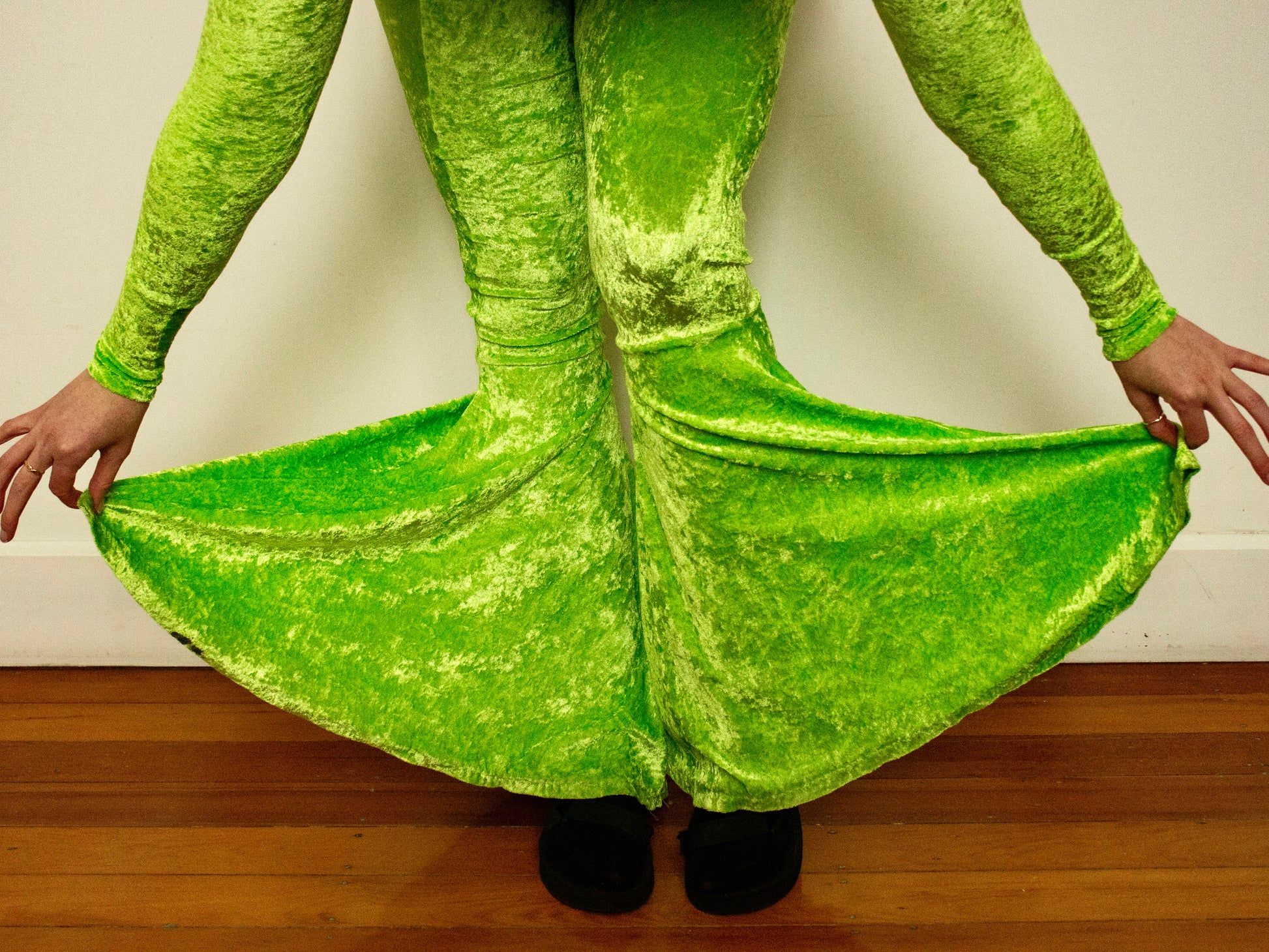 These Assless Chaps are the solution to those cold winter raves. Keep your leggies warm and your booty looking hot!! High waisted and featuring super flares, these chaps can be made in velvet, spandex or other stretch fabrics. Length options for everyone from petite sorceresses to fiery glamazons.