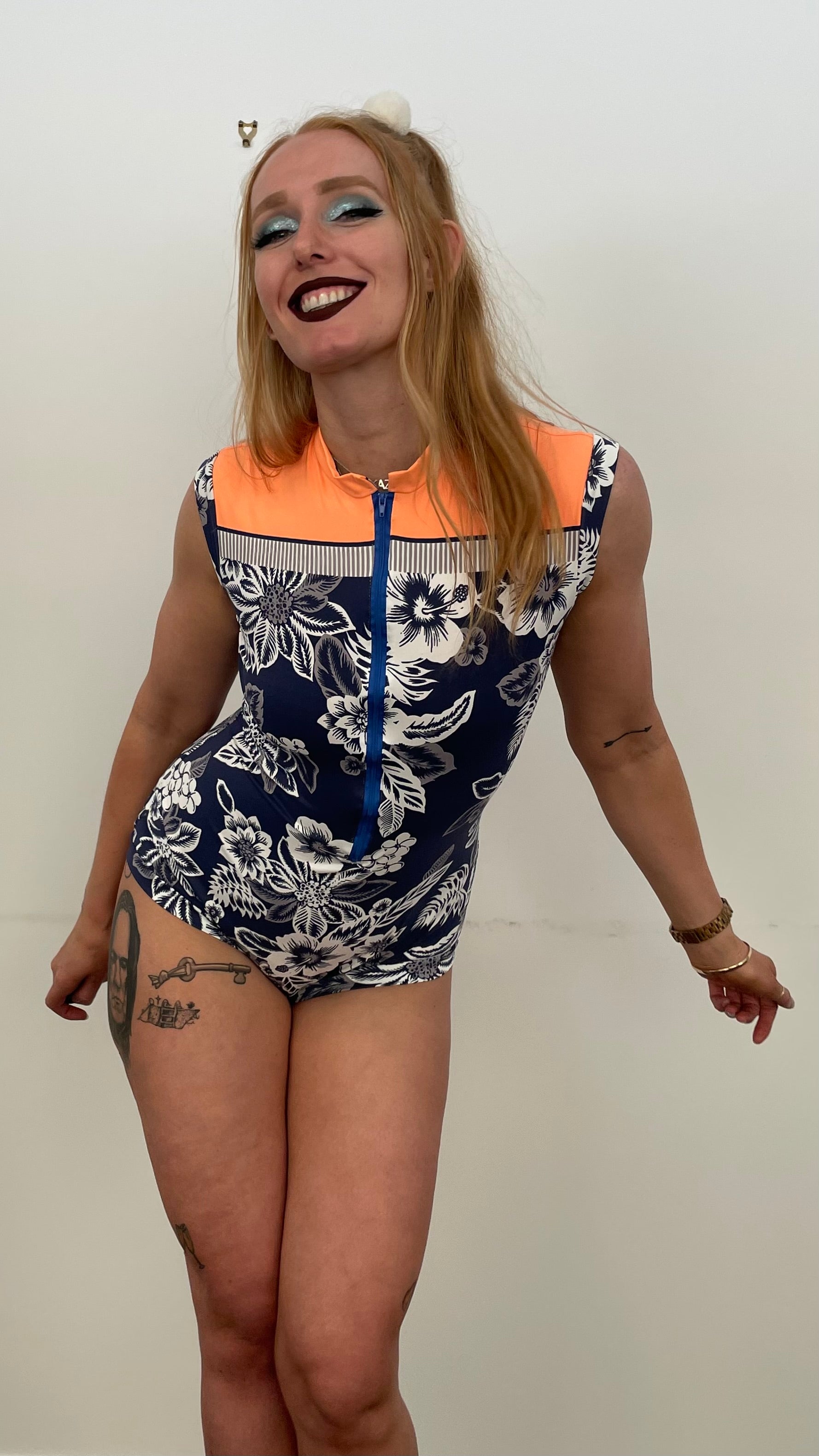 Gorg little jumpsuit leotard combo. A bit retro, a bit futuristic, 100% glamorous. Featuring gold metal zip with star puller, soft fabric bands on armholes, leg holes and neckband. Write in the notes if you want this for swimwear and I'll switch the zip for a plastic one!